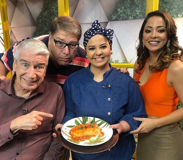 Recheie a panqueca com o frango e enrole. Cubra com o molho e serva!