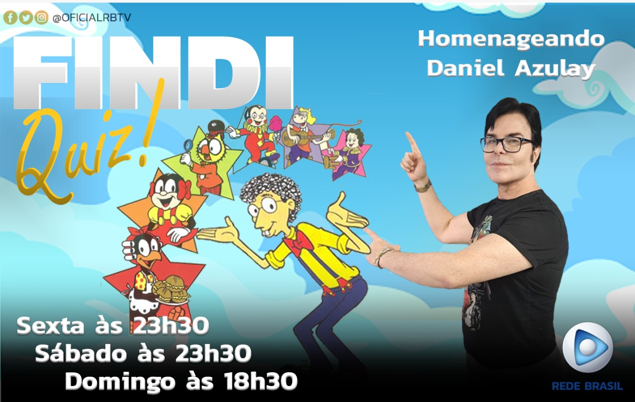 Neste final de semana, o apresentador e diretor de programação Evê Sobral traz um Findi Quiz repleto de filmes de grandes sucessos e homenageia Daniel Azulay que foi um artista plástico, além de educador com vasta e diversificada atuação na Imprensa e na TV como desenhista. Também foi compositor e autor de livros infantojuvenis e videogames interativos.