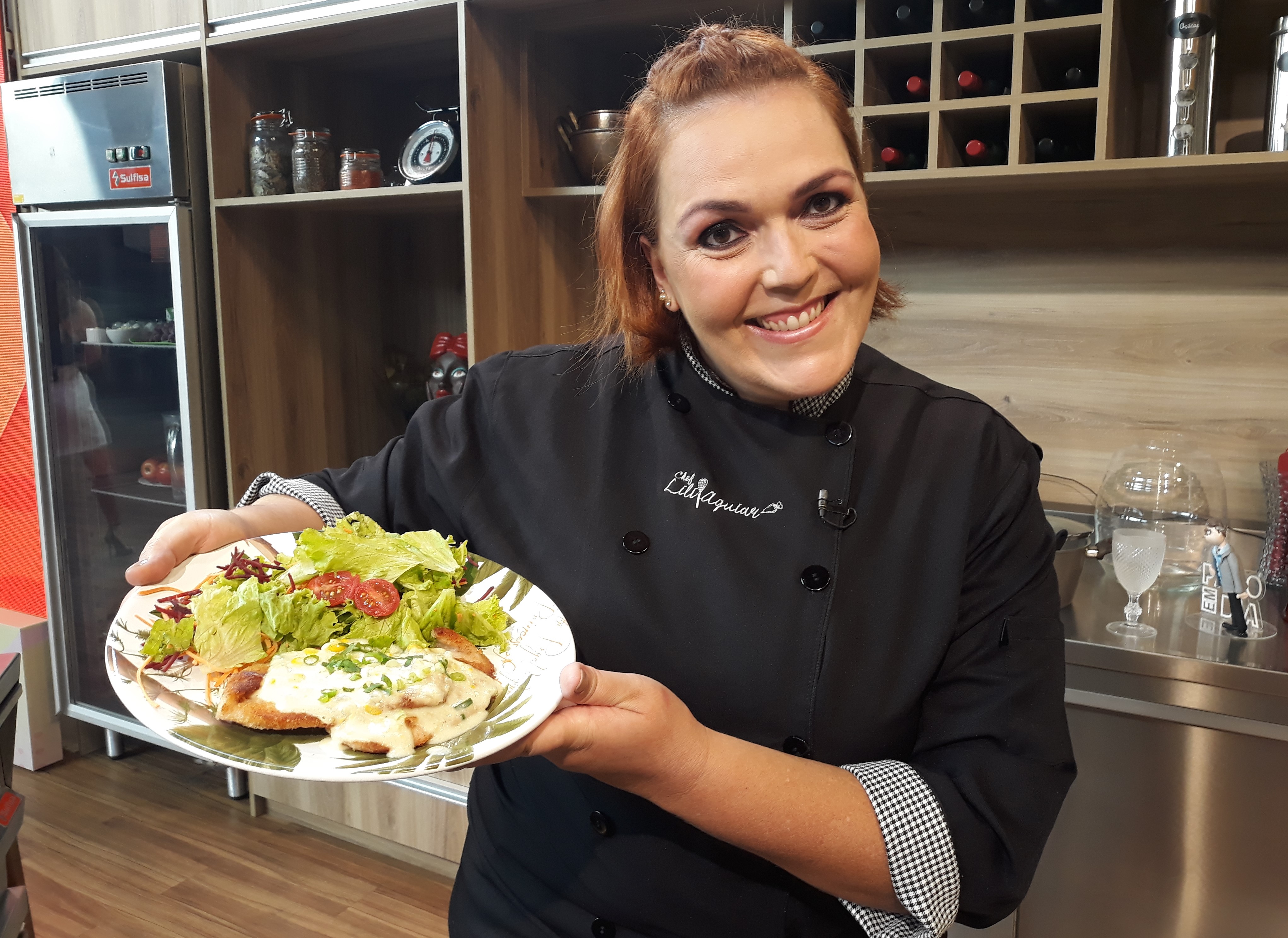 FILÉ DE FRANGO EMPANADO COM CREME DE MILHO